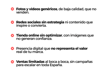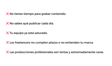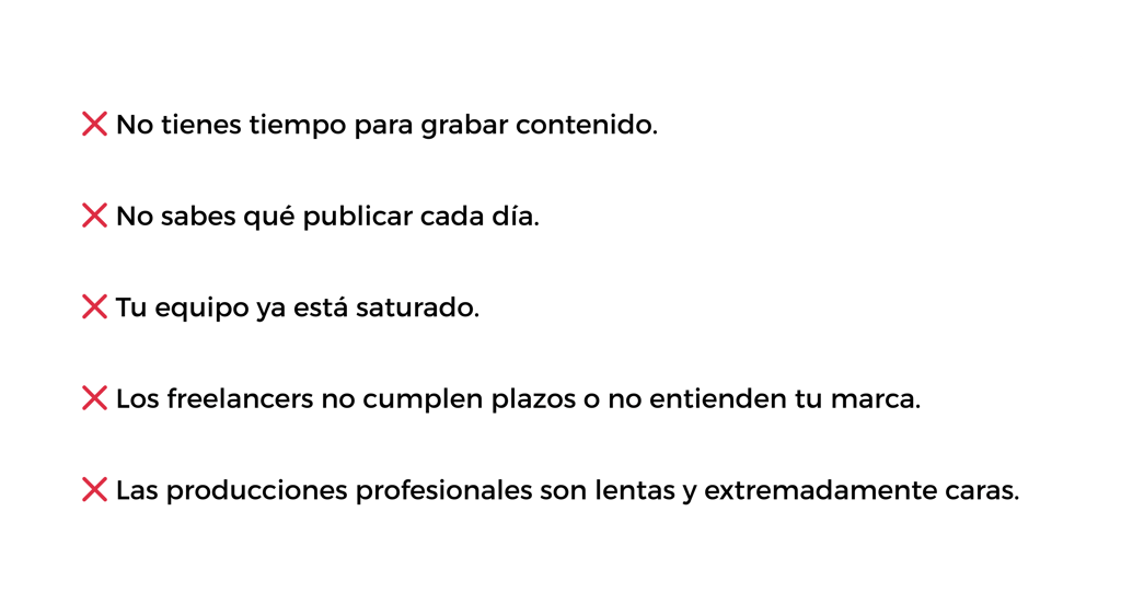 Sin ampliar tu equipo actual ni asumir producciones costosas. Solo resultados y contenido que se adapta de verdad a tu marca.